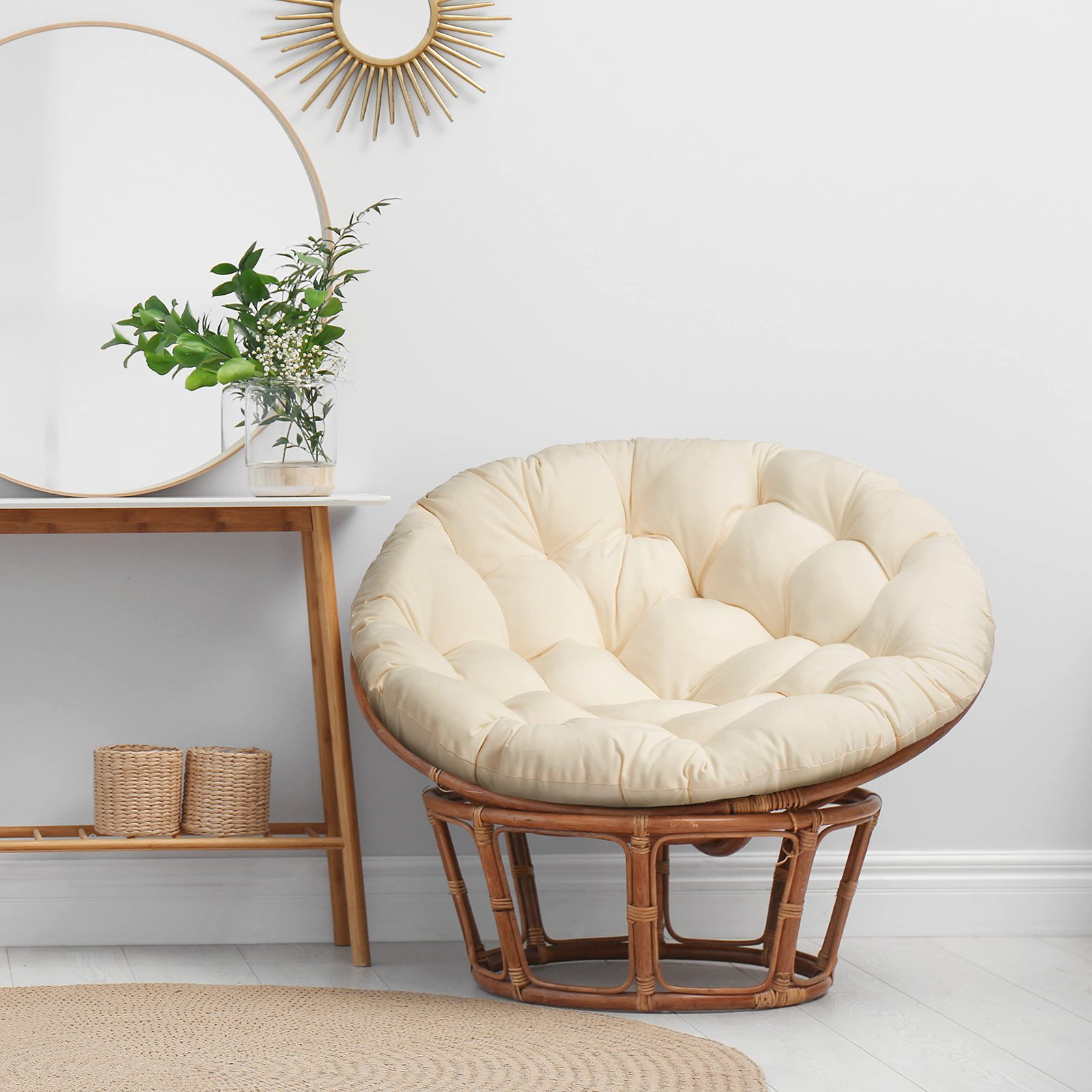 Add style and comfort to your indoor space with this 48-Inch twill papasan cushion. Features classic tufted style in premium twill fabric.