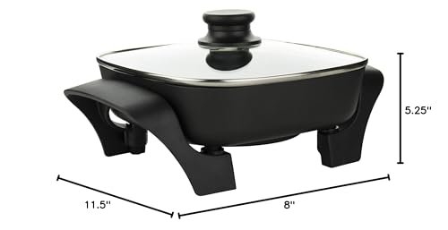 The Brentwood Appliances 8-inch Nonstick Electric Skillet with Glass Lid is perfect for frying, grilling, roasting, stewing, and baking. It includes an adjustable thermostat, 2 convenient handles, a steam vented tempered glass lid, and a simple-to-clean nonstick surface. Cook meals efficiently for any time of the day without wasting energy.