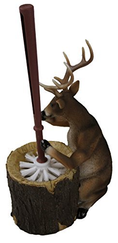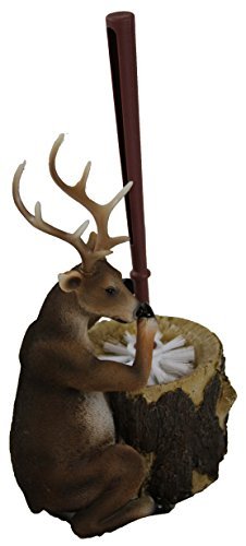 Snickering deer holds a toilet brush in a faux hollow log. Bring humor to any hunter’s bathroom with this stable and high-quality deer design.
