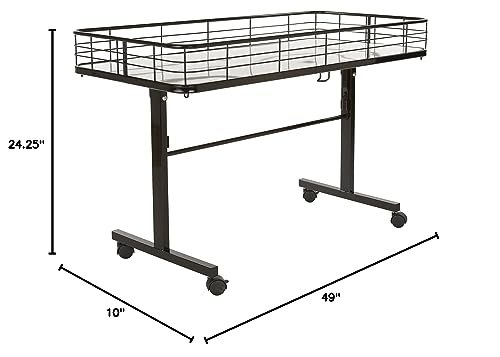 Primarily designed for sale items, overstock items, packaged goods, or promotional programs. Features casters for easy mobility and folds for convenient storage. The basket measures 4 5/8″ deep. Comes with two locking and two non-locking twin-wheel casters.