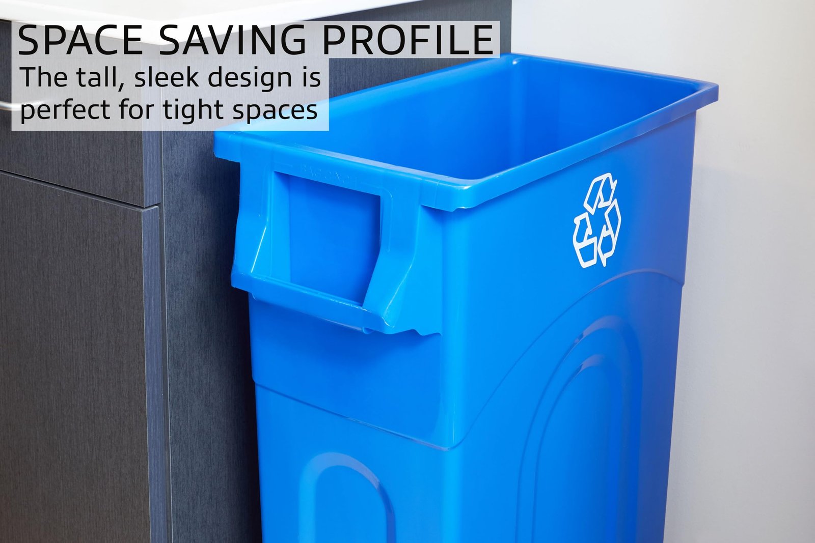 United Solutions Highboy Recycling Container, 23 Gallon, Space Saving Slim Profile and Easy Bag Removal for Indoor or Outdoor use, Recycle Blue (TI0033)