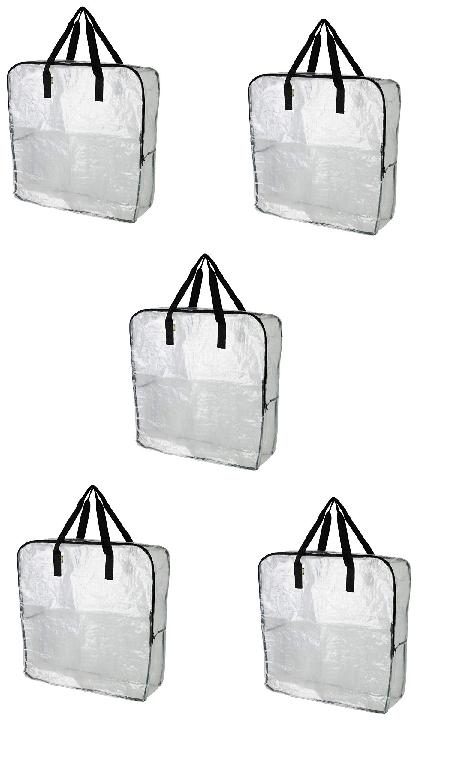 IKEA DIMPA Extra Large Storage Bag is perfect for heavy-duty use with moth and moisture protection features. This pack includes 5 clear bags measuring 25 ½x8 ¾x25 ½ each.