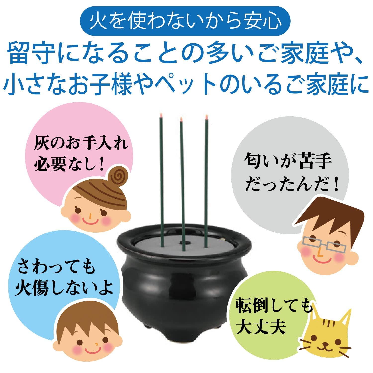 Safe incense sticks that produce no smoke or odors, easily lit up with a switch.