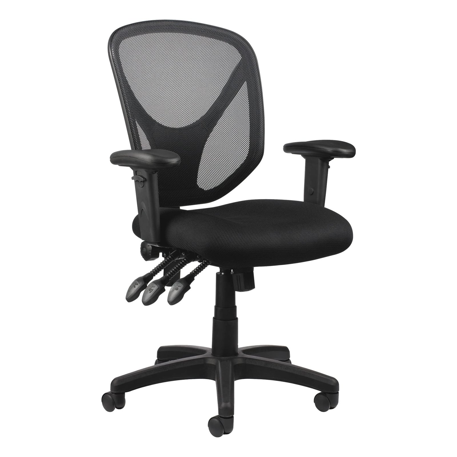 Update your workstation with the Realspace ergonomic task chair. Enjoy flexible seating angles with the tilt-lock mechanism and adjustable tilt tension. The mesh back fabric ensures optimal air circulation for cool comfort during work sessions. Customize back and arm height for personalized comfort. One-touch pneumatic height adjustment accommodates most users. Backed by a 5-year limited warranty, ANSI/BIFMA compliant for safety.