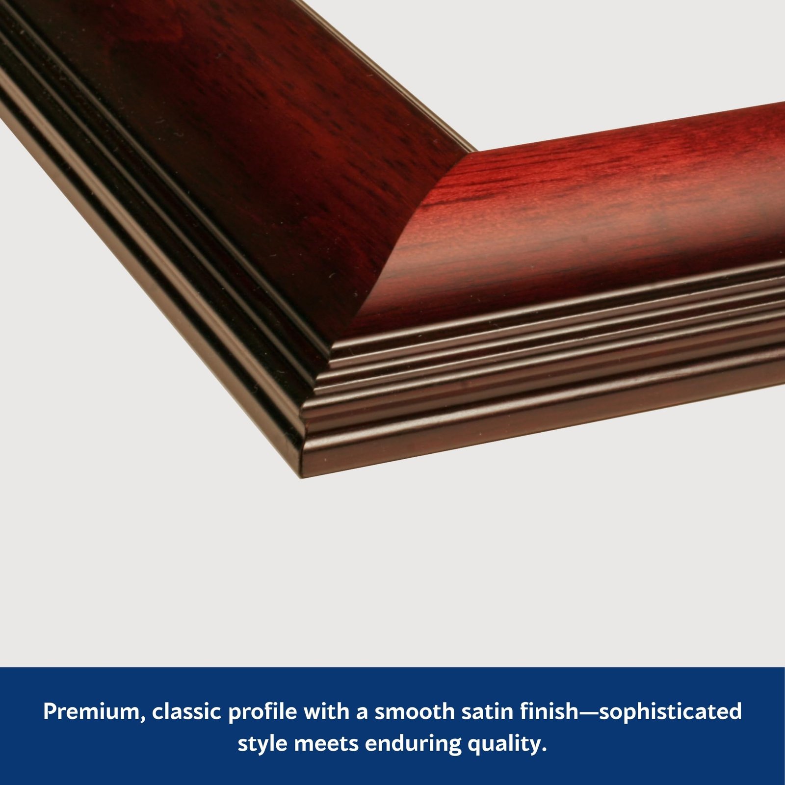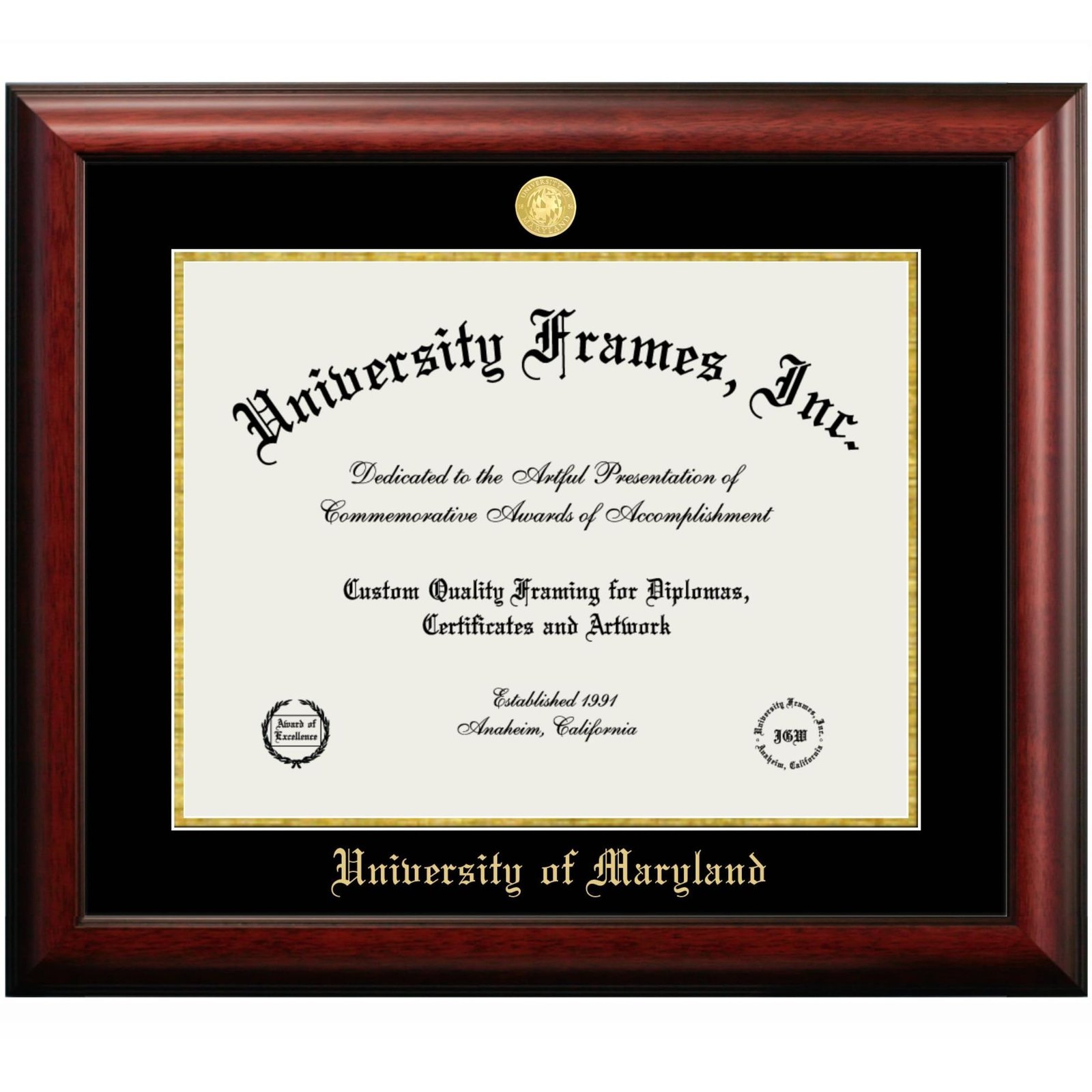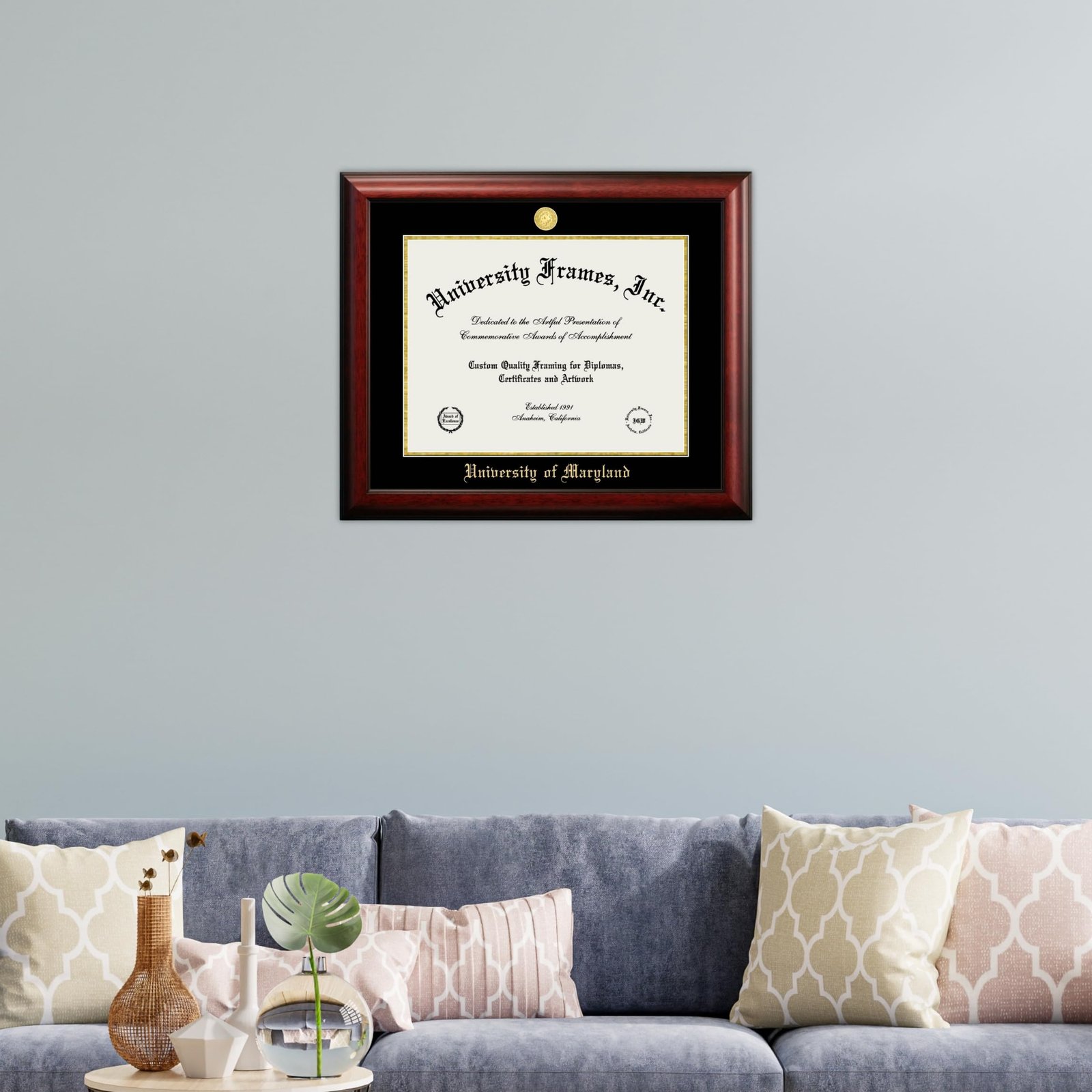 Classic satin mahogany diploma frame featuring the official University marks and imprinted with University name. Custom made to fit any diploma size.