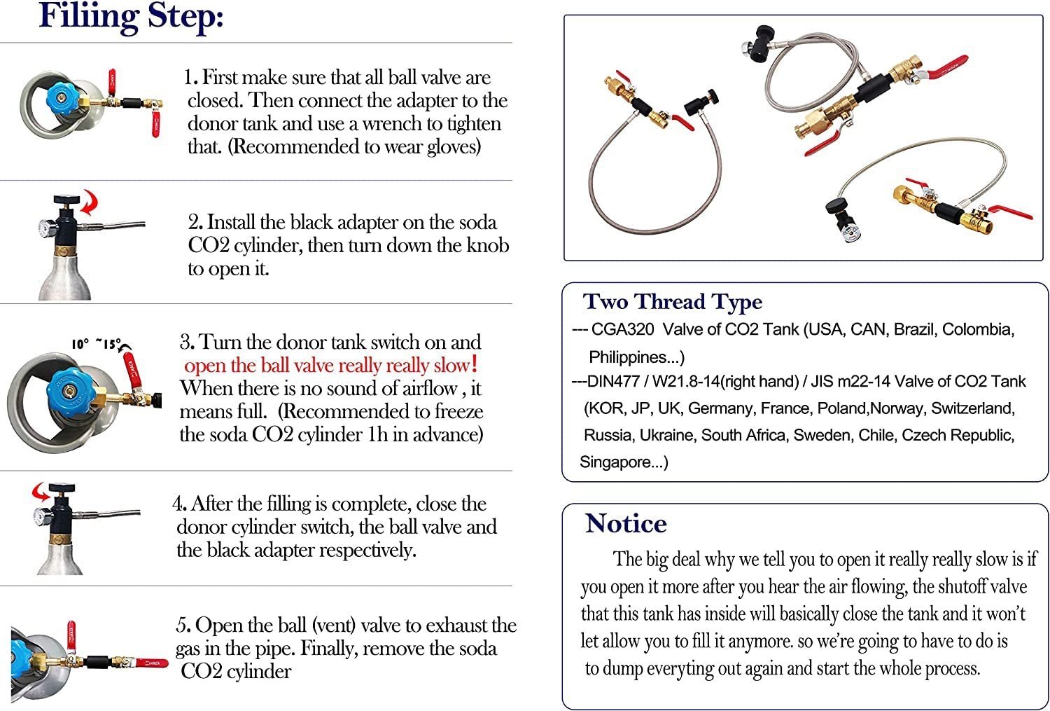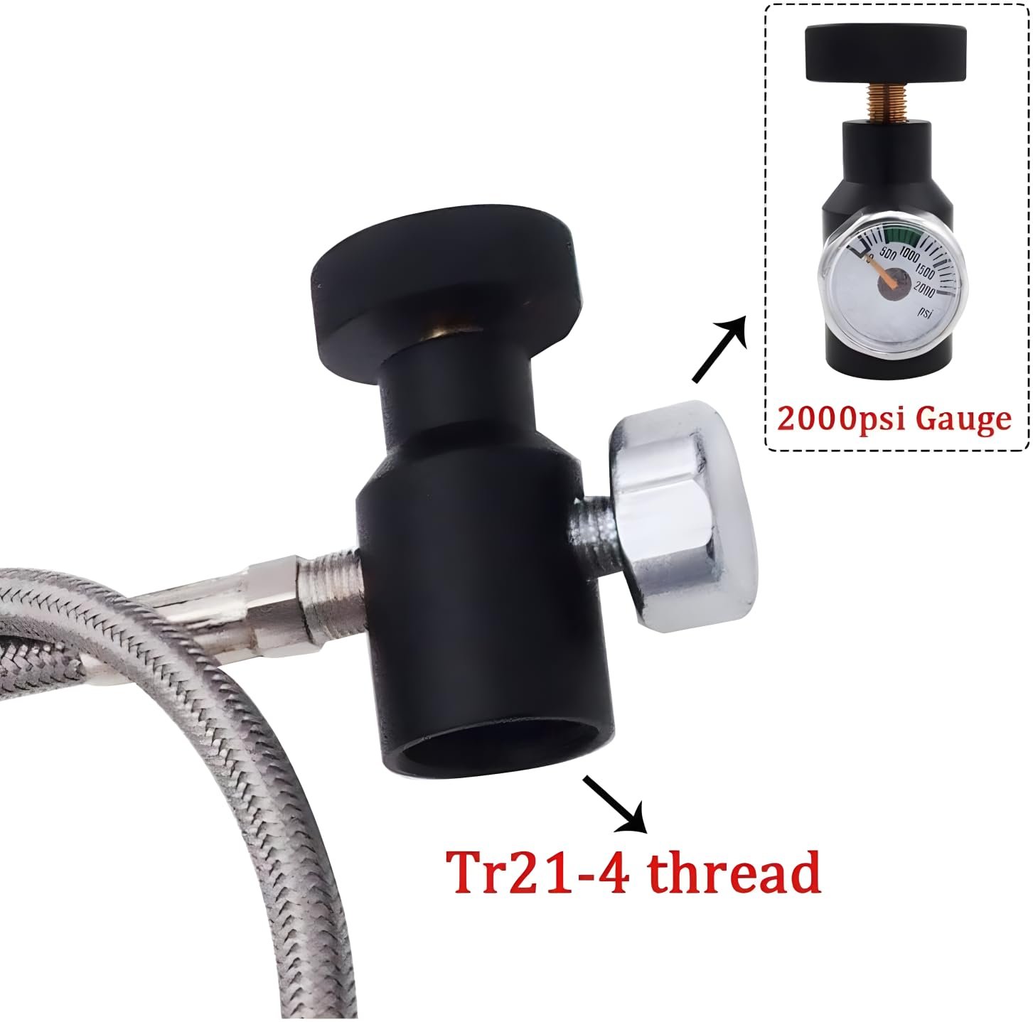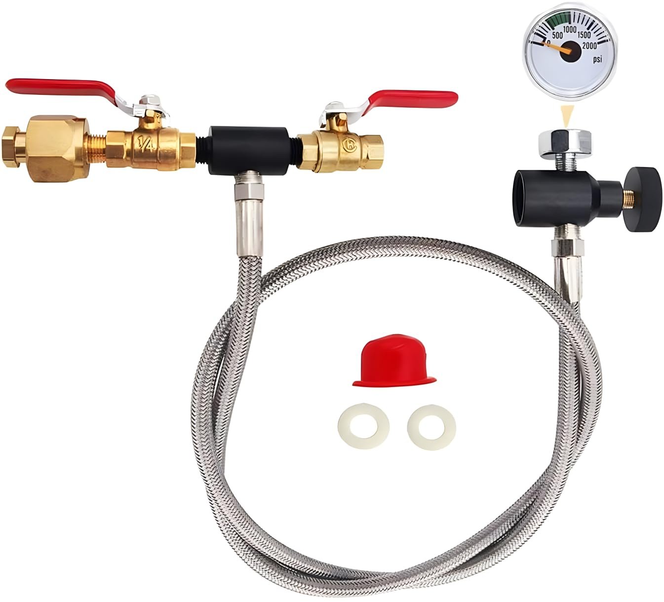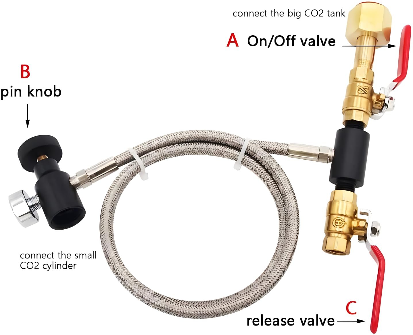 - Function: Refill small CO2 tanks easily from larger ones with two valves and pressure gauge.