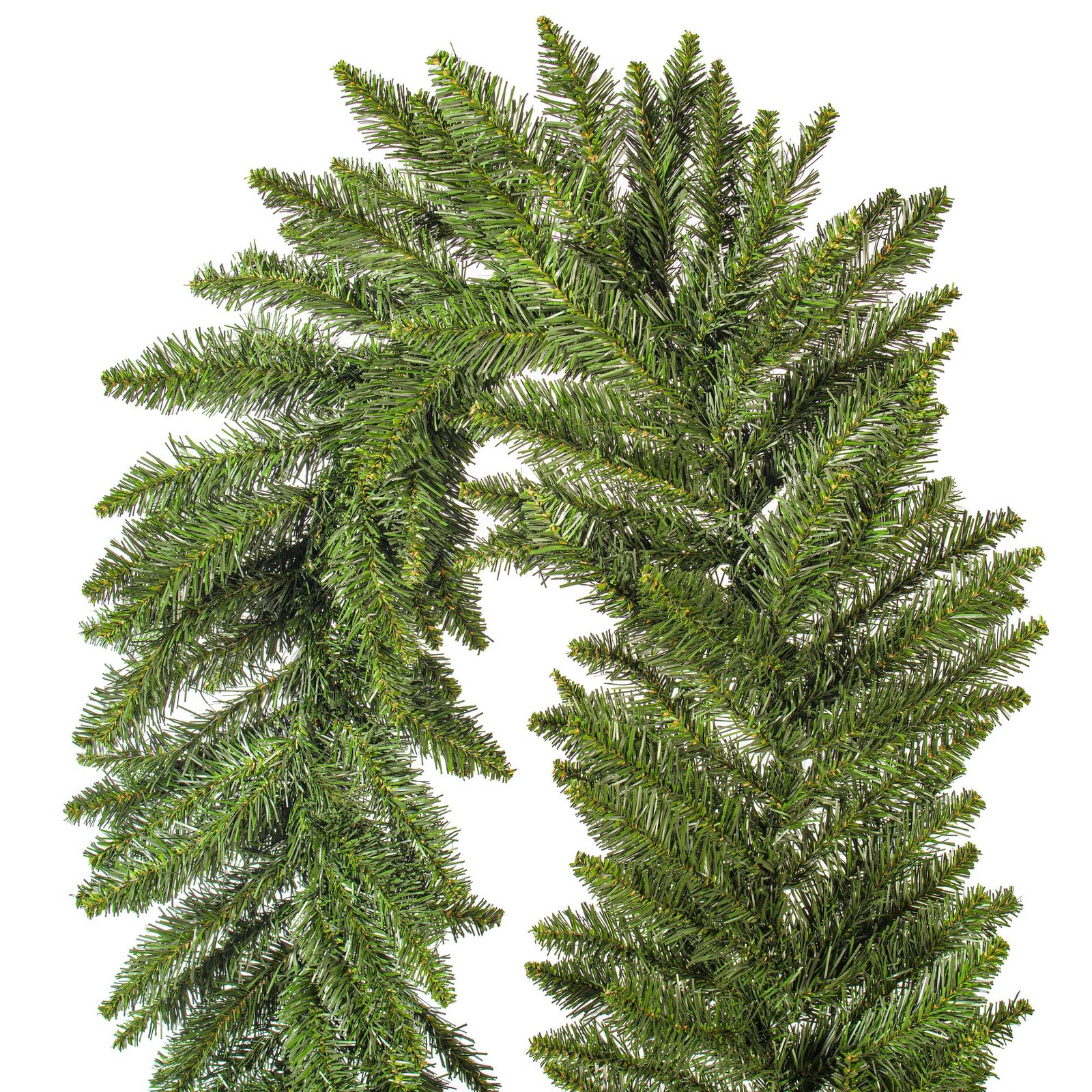 Vickerman 9′ x 14″ Camdon Fir Artificial Christmas garland with 260 PVC Tips. Wrap this plush garland around a banister or drape it over a mantle to create a cozy holiday feel. The Camdon series features a luscious blend of green PVC tips to create a full look. This beautiful garland comes unlit and can be customized with your favorite lights, ornaments, ribbons or Holiday picks. The cascading Christmas garland design gives a natural-looking Christmas garland feel, making it an attractive addition to your Christmas décor. Designed with a heavy-duty wire frame, this artificial garland maintains its shape. The dimensions of this garland are L108″ W14″ H14″. Flexible wire spine allows this garland to be shaped to fit your design. For additional complimentary accents see the many wreaths and trees available from Vickerman. This durable garland is maintenance free and will suit any decor. Vickerman has been an industry leader since 1940. Enjoy this expert designed seasonal garland around your home.