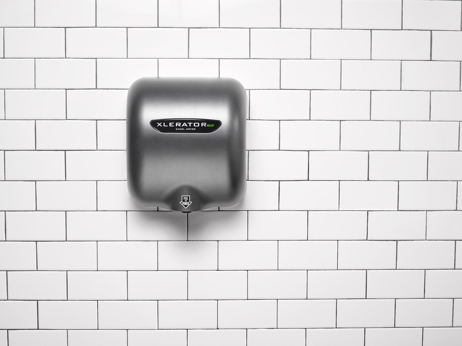The XLERATOR series is a high-speed hand dryer made in the USA with a 5-year warranty. The ECO version saves energy by removing the heating element and features a powerful motor providing fast hand drying. Automatic operation with safety shut off. Textured Graphite Cover. Additional Information: 110-120V, 50/60Hz, 4.5A, 500 Watts. Optional HEPA filter kit available (not included).